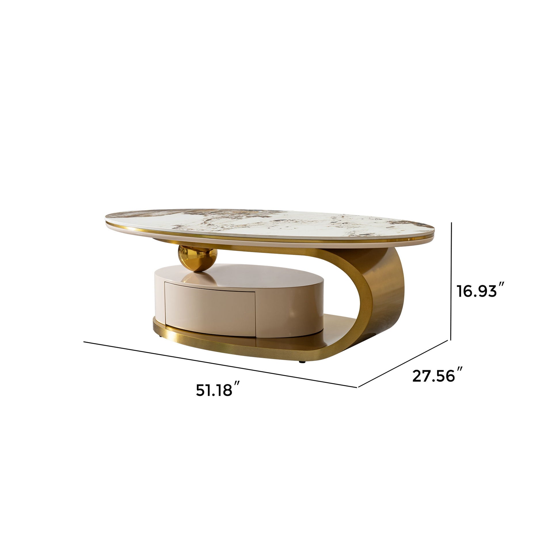 Modern Coffee Table Thick Sintered Stone Top With 2 Drawers Matt Stainless Steel Base - Gold