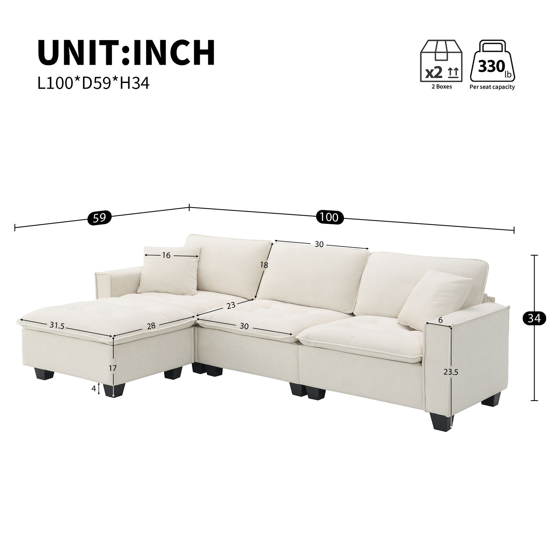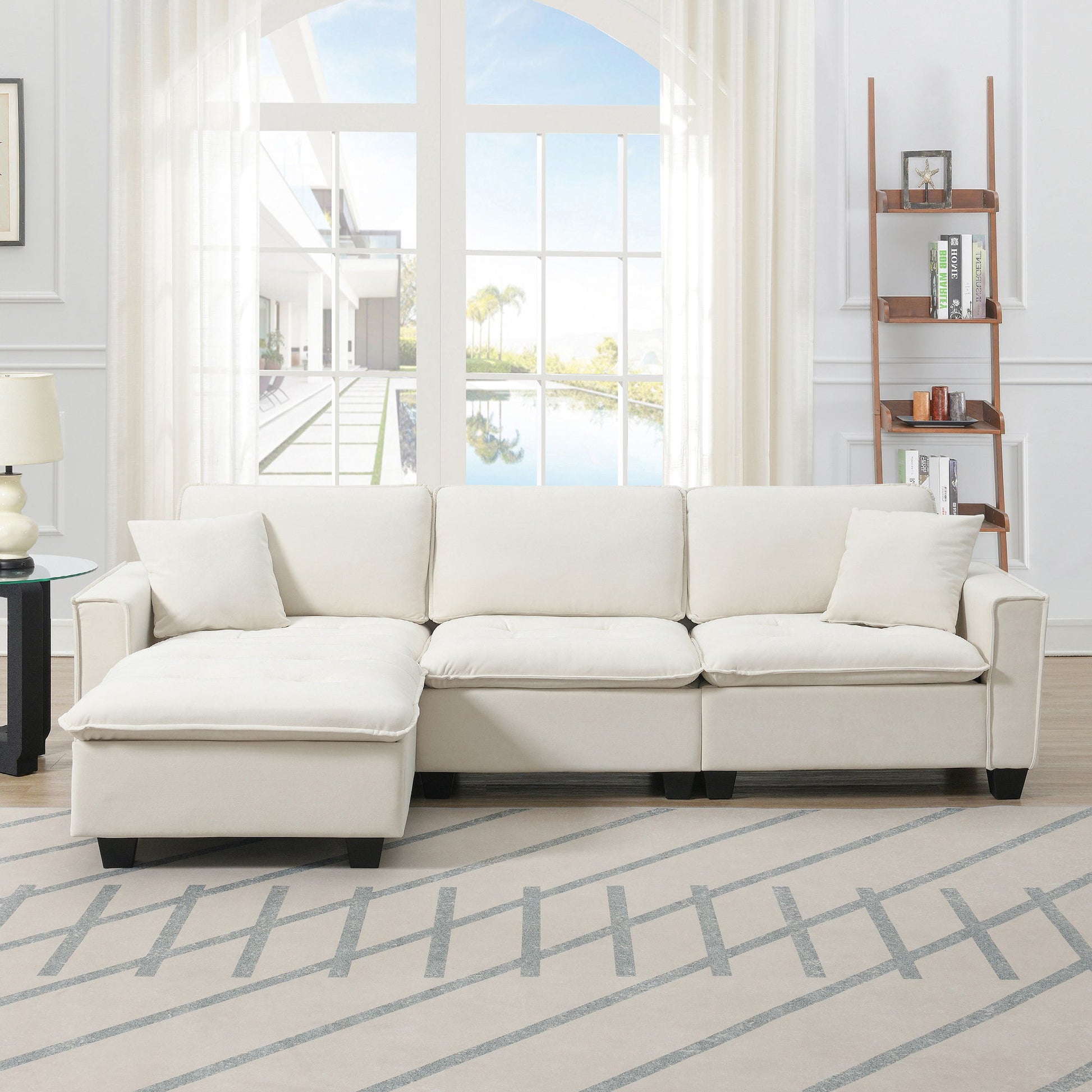Modern Convertible Sectional L Shaped Reversible Couch Set With Free Pillows 4 Seat Suede Sleeper Sofa With Ottoman - Beige