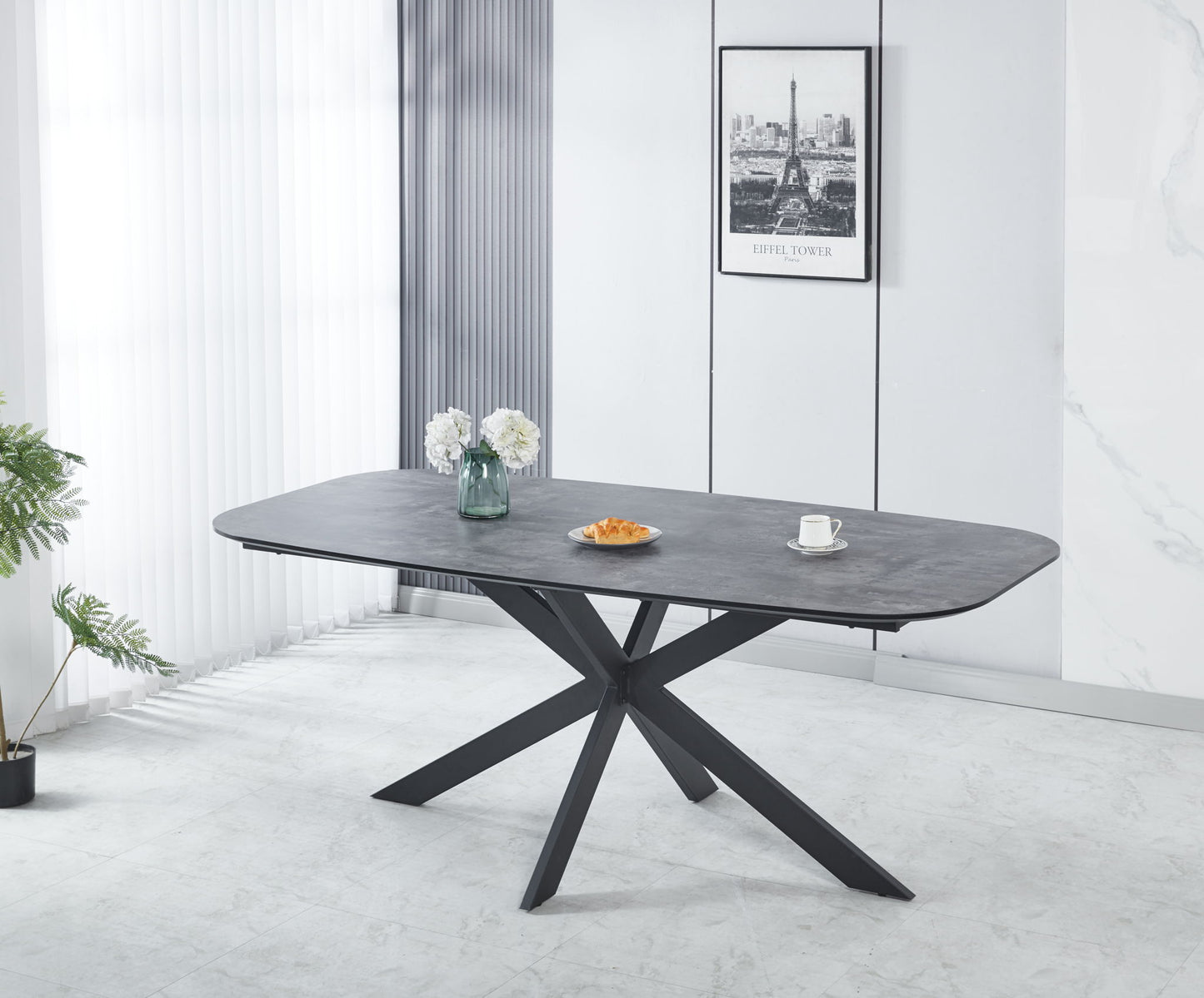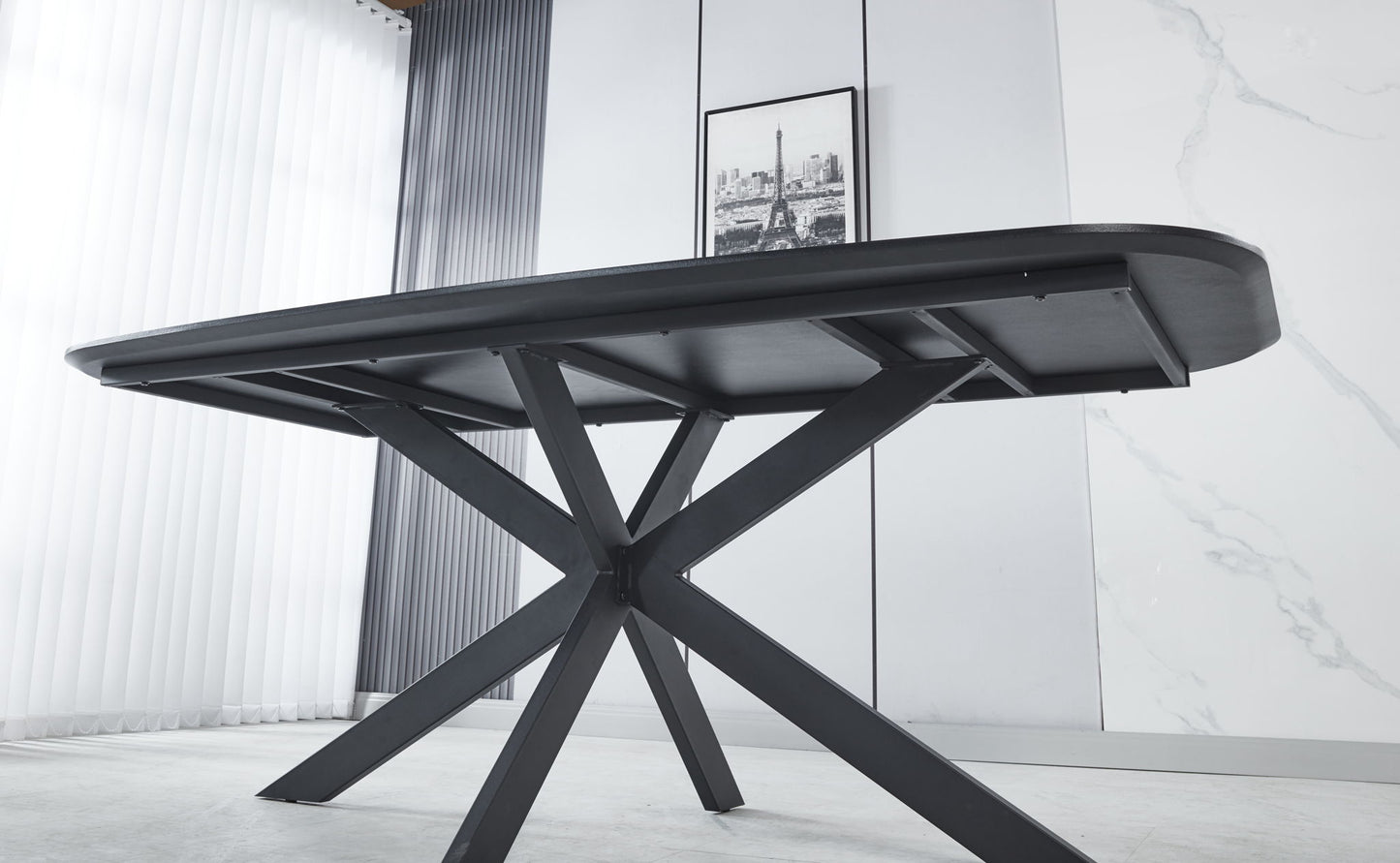 Modern Dining Table, MDF With Paper Finish, Metal Leg Powder Coating - Gray / Black