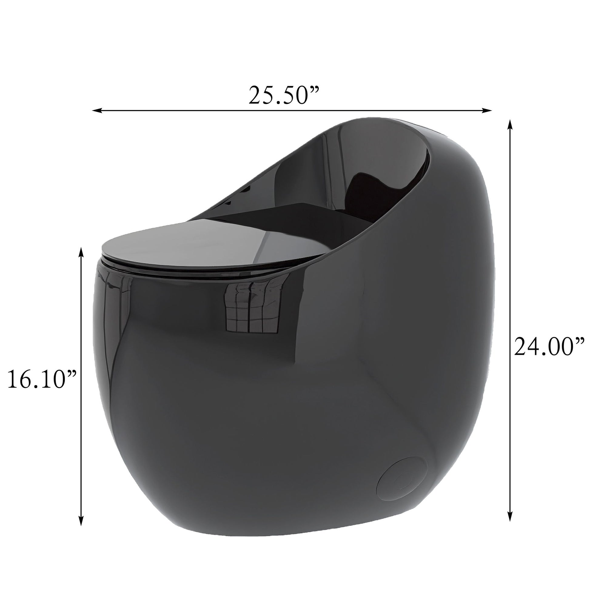 Egg Shape Toilet 1 Piece 1.28 Gpf Single Flush Ceramic - Black