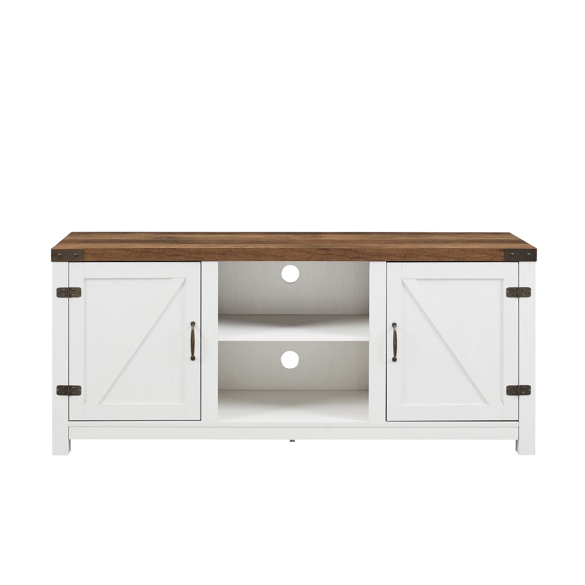Modern Farmhouse Barn Door 3 Shelf TV Stand For TVs Up To 65β - Rustic Oak / Brushed White
