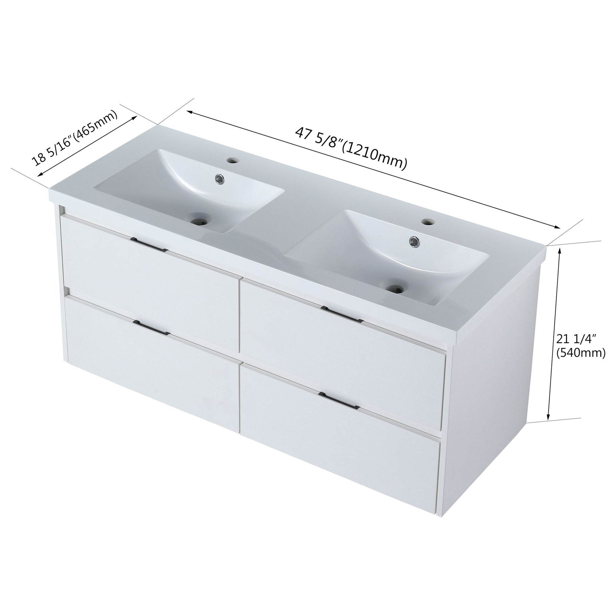 Modern Floating Bathroom Vanity With Dual Resin Sink, Soft Close Drawers