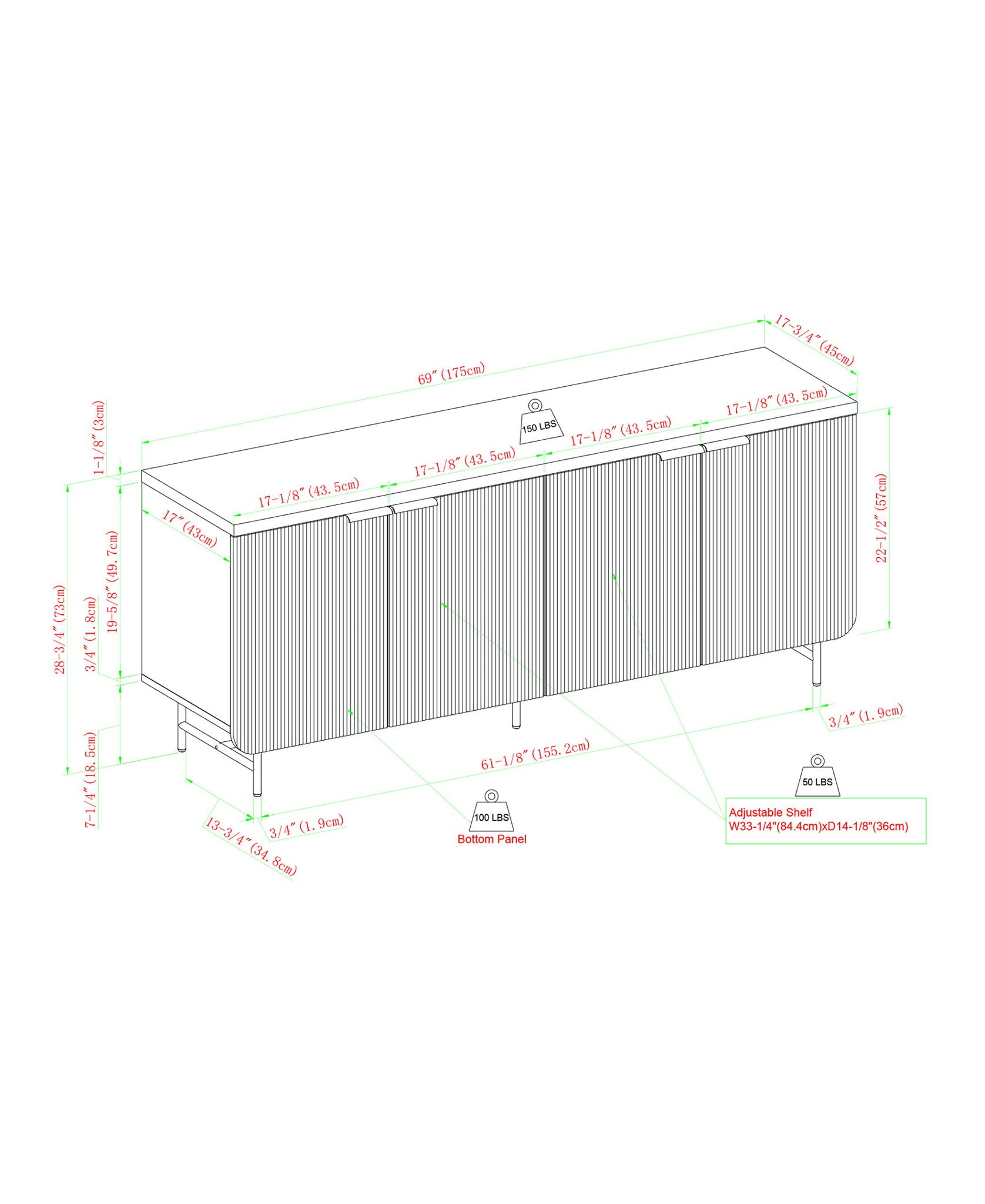 Modern Fluted Door Minimalist Storage Sideboard - Dark Walnut / Gold