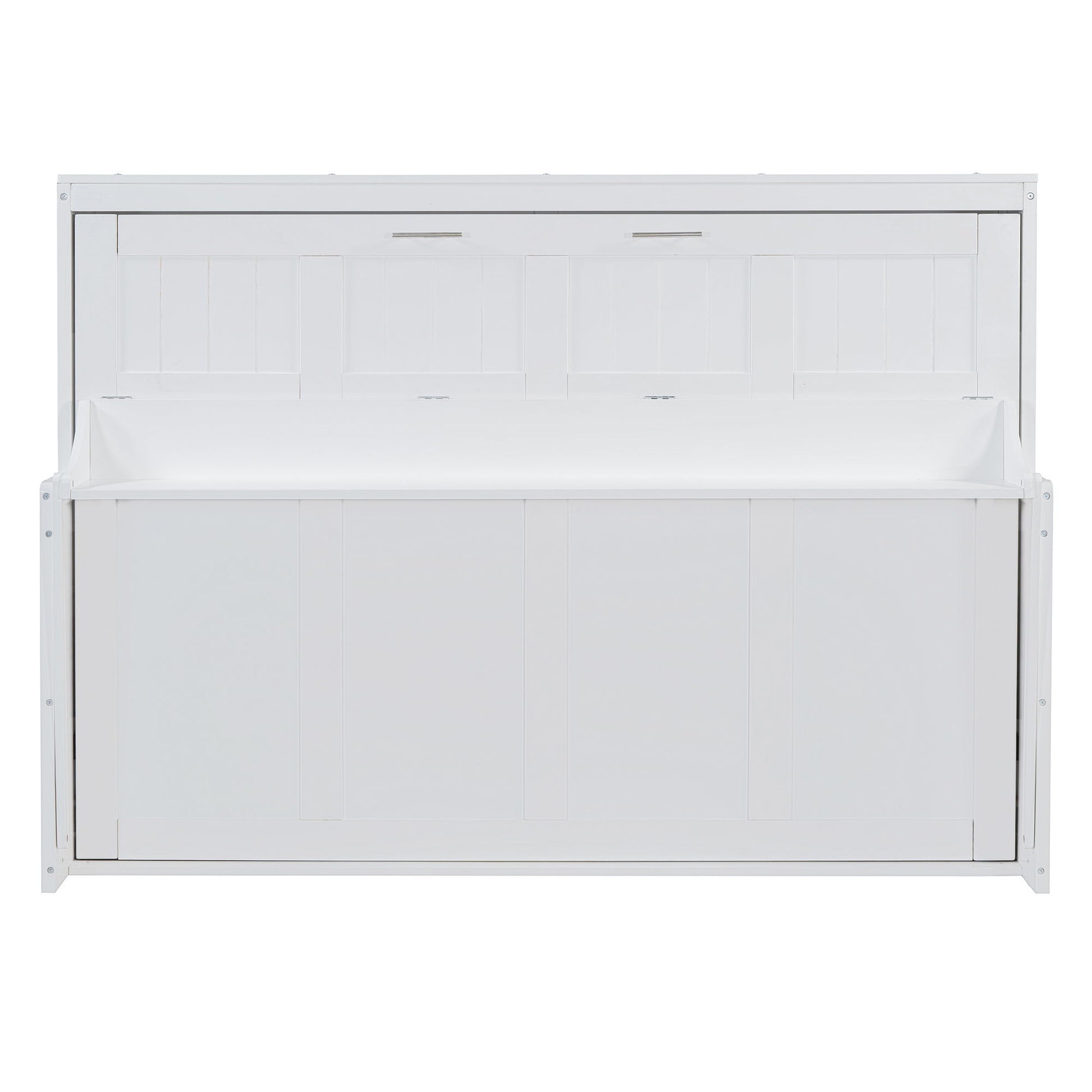 Queen Size Murphy Bed With Hydraulic Lift & Desk Design - White