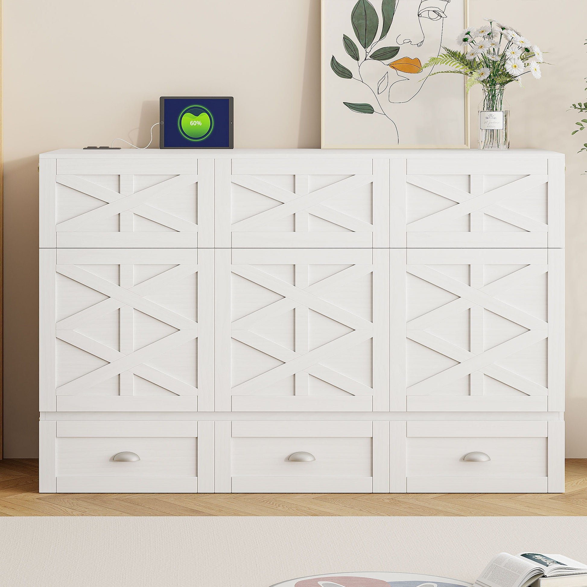 Full Size Murphy Bed With Large Drawers - Brushed White