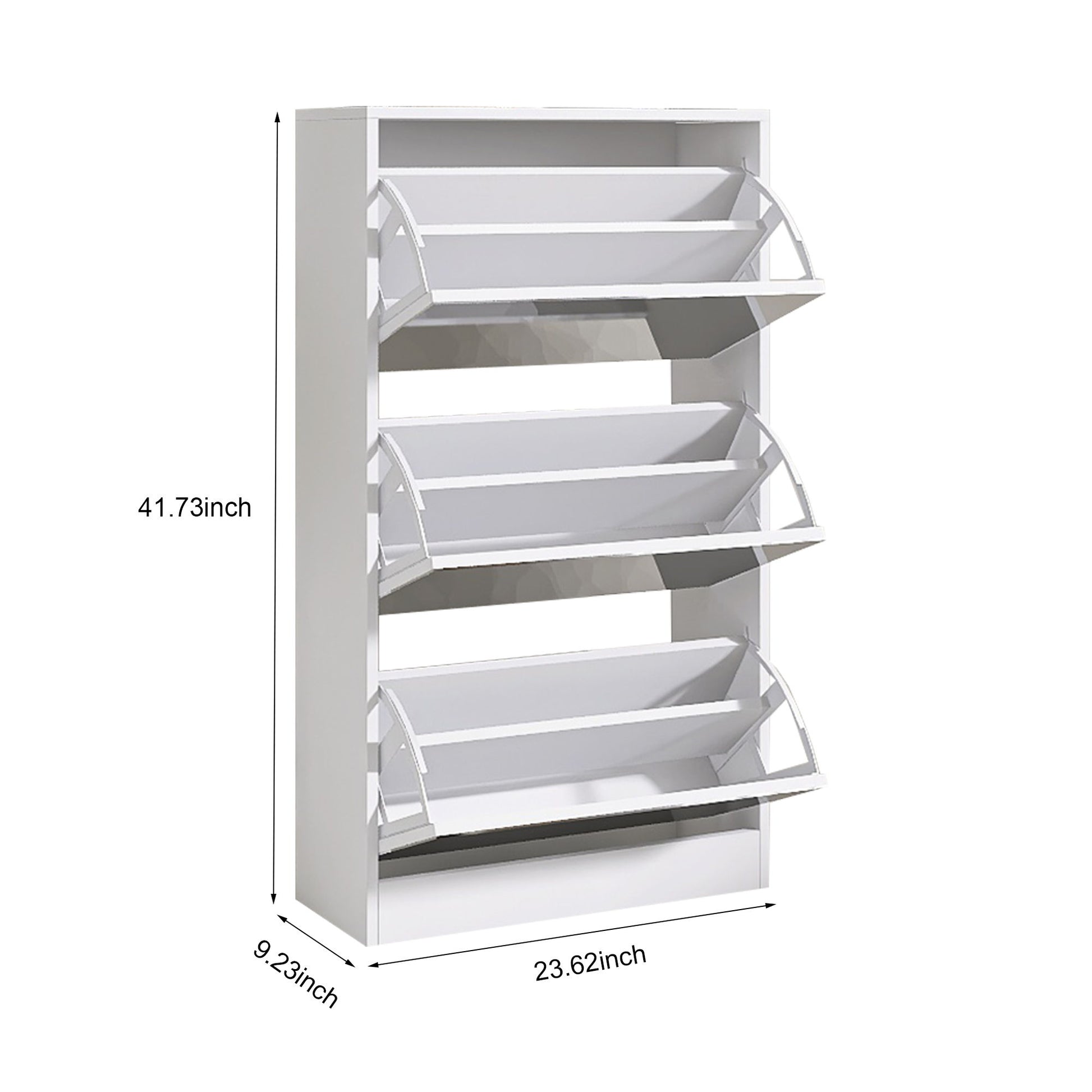 Narrow Shoe Storage Cabinet With Mirror, Wood Slim Shoe Rack 3 Tier Shoe Organizer For Home And Apartment - White