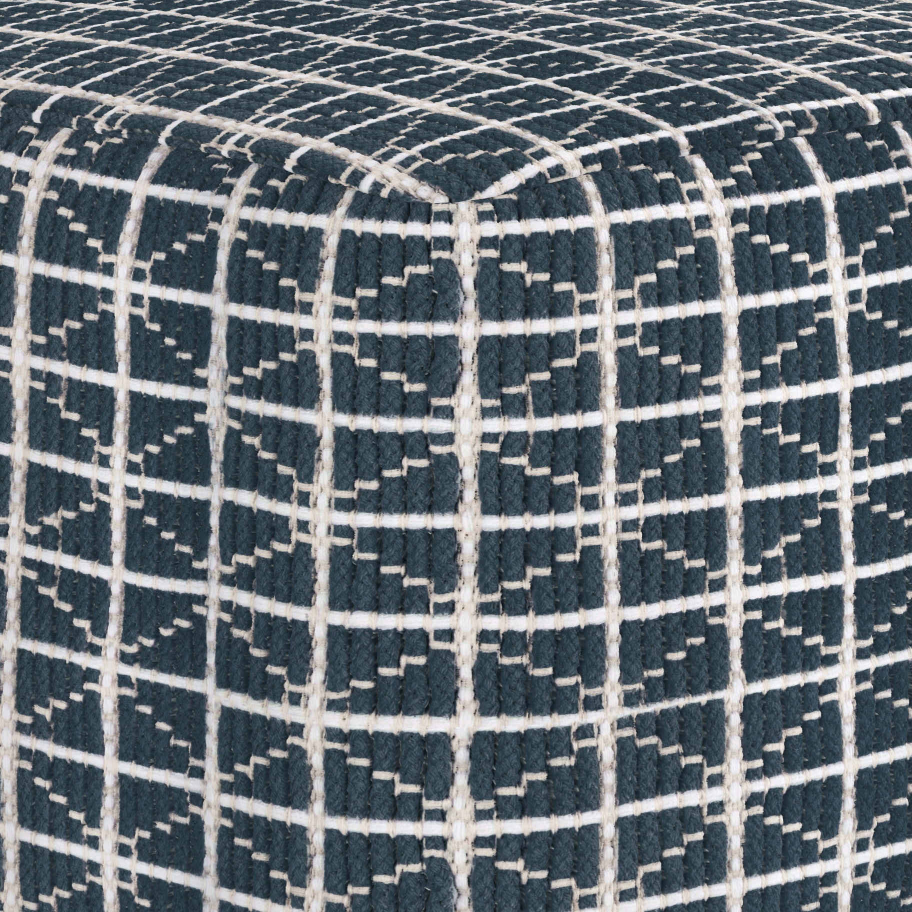 - Upholstered with Hand Woven Dark Blue and White Cotton