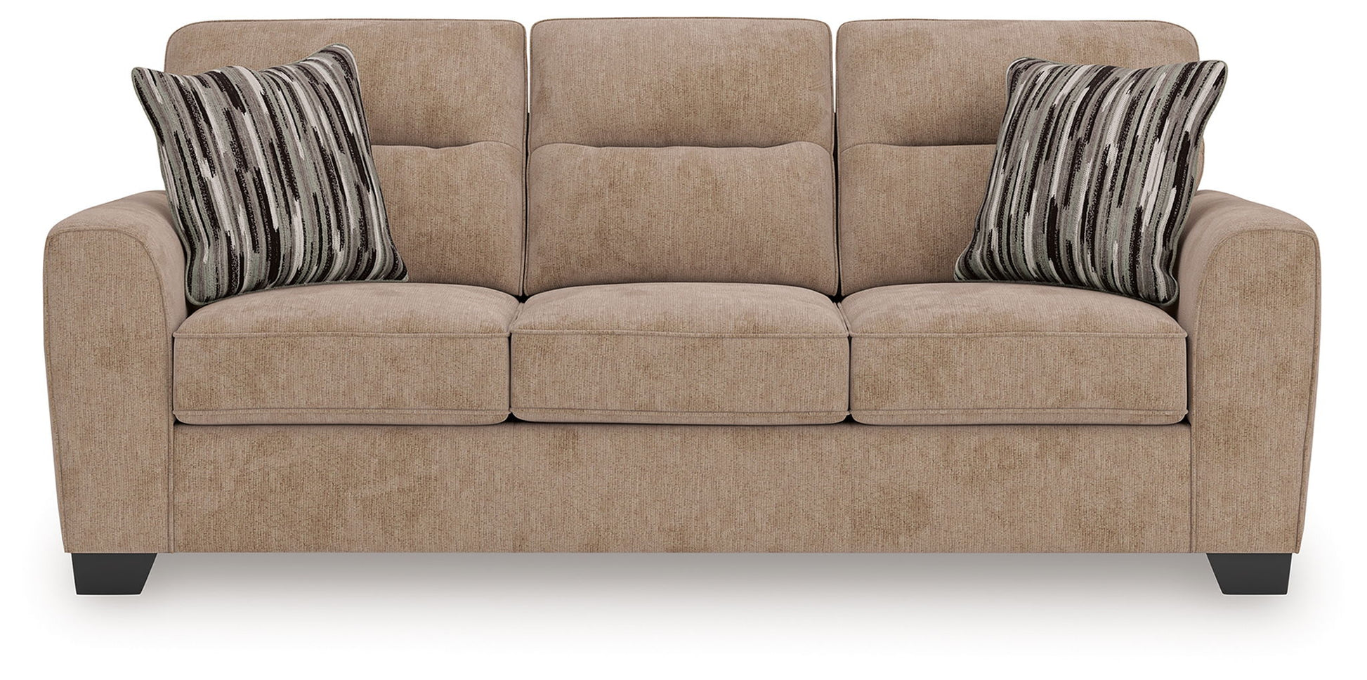 Strike a balance between the indulgent comfort you crave and the contemporary aesthetic you long for. The fabulously soft upholstery of this sofa takes neutrals to new heights. Plus there's plenty of room to spread out and relax solo or with your bestie. Geometric-patterned accent pillows perfect the richly on-trend aesthetic.