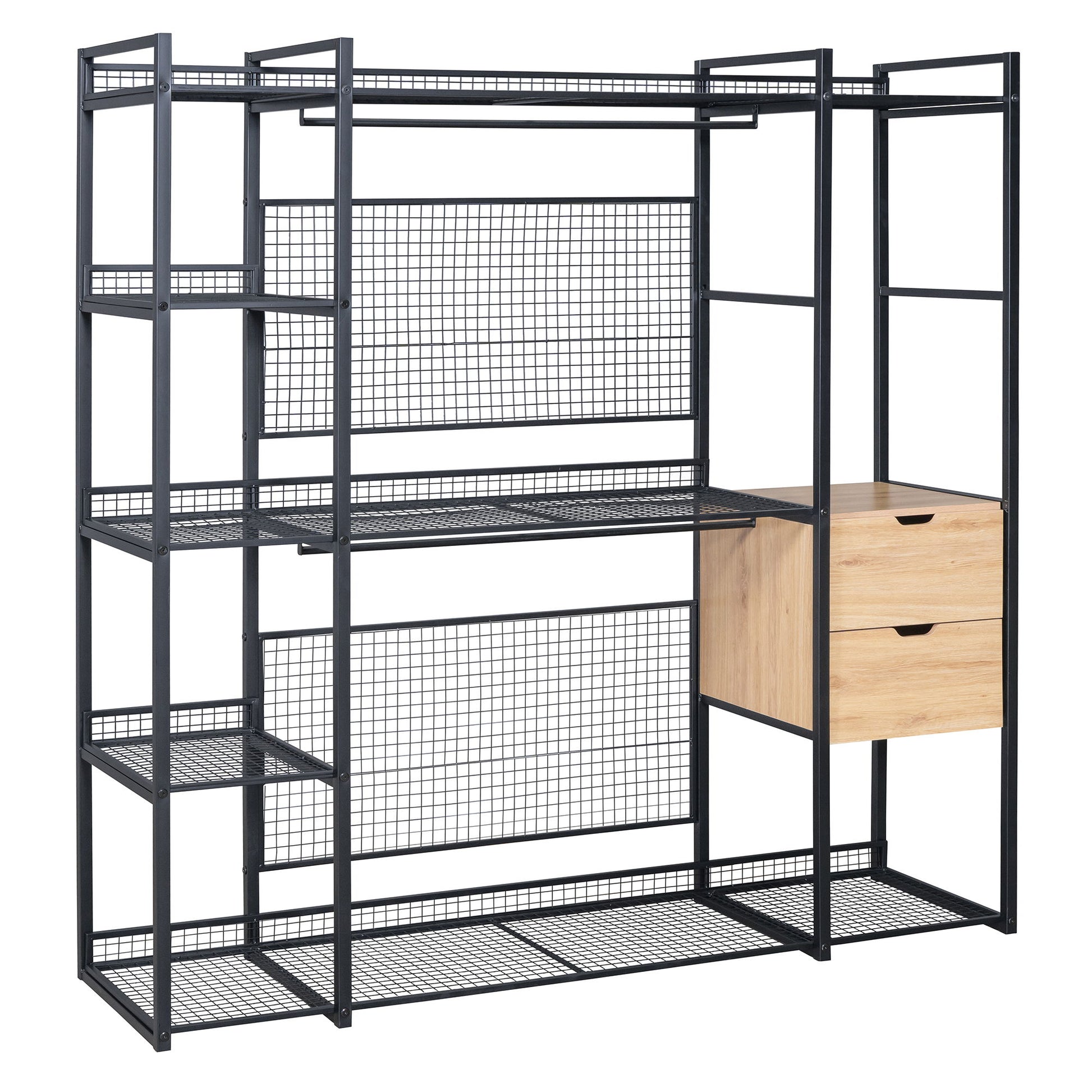 Open Style Wardrobe With Hanging Rails, Shelves And Drawers - Black