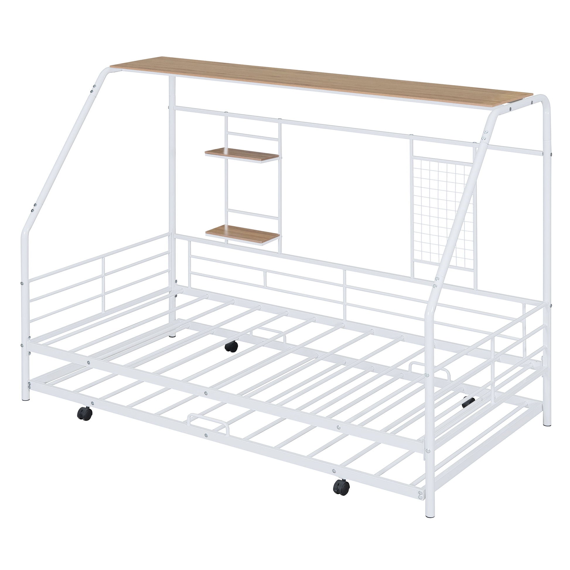 Built-in Shelf and Grid: The metal bed maximizes space utilization with three shelves and a metal grid for hanging decorations, photos, and more, adding functional storage and personalization options.