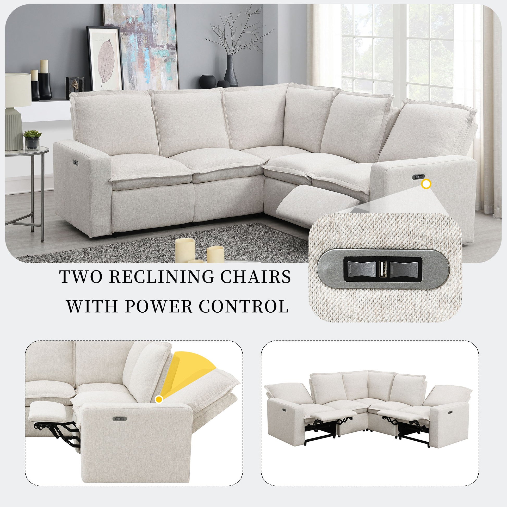 Power Recliner Chair Home Theater Seating Soft Chair With USB Port For Living Room, Bedroom, Theater Room - Beige