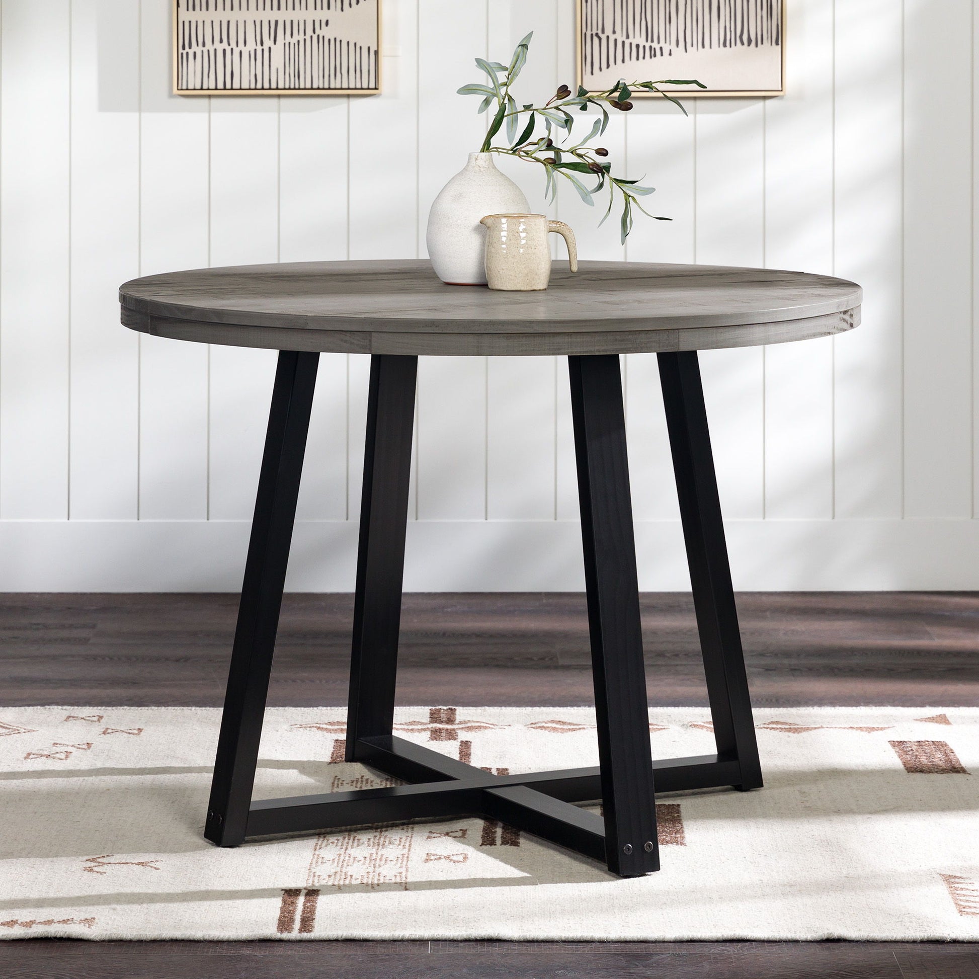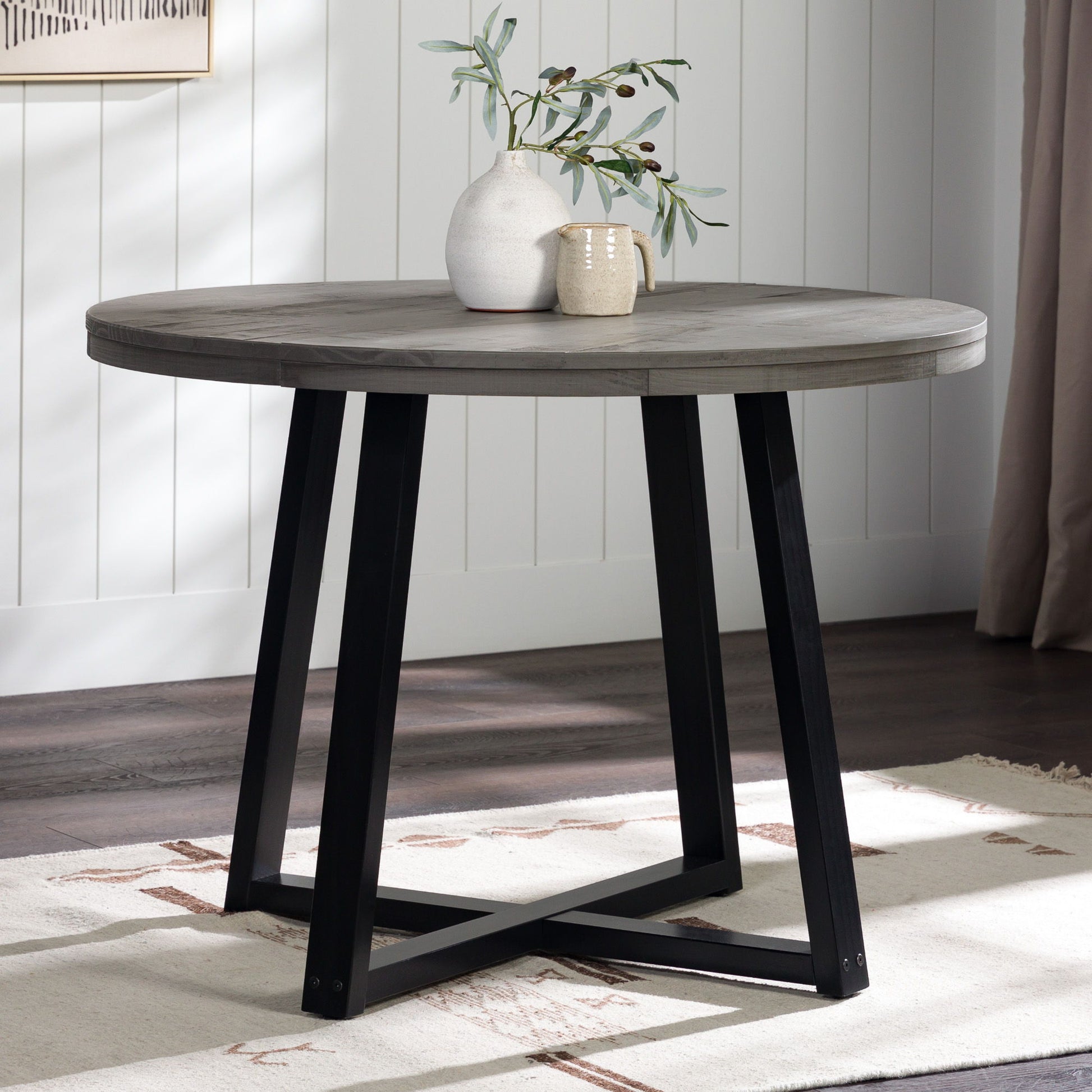 Rustic Distressed Solid Wood Round Dining Table - Gray