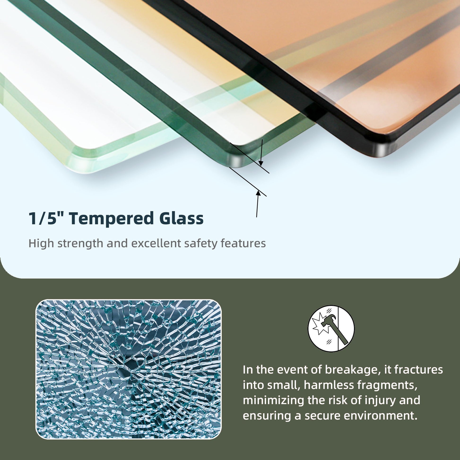 - Certified Safety: SGCC-certified 1/5" tempered safety glass reduces breakage risks while maintaining clarity. Stain-resistant surface simplifies cleaning. Combines security with low-maintenance functionality for worry-free bathing environments.