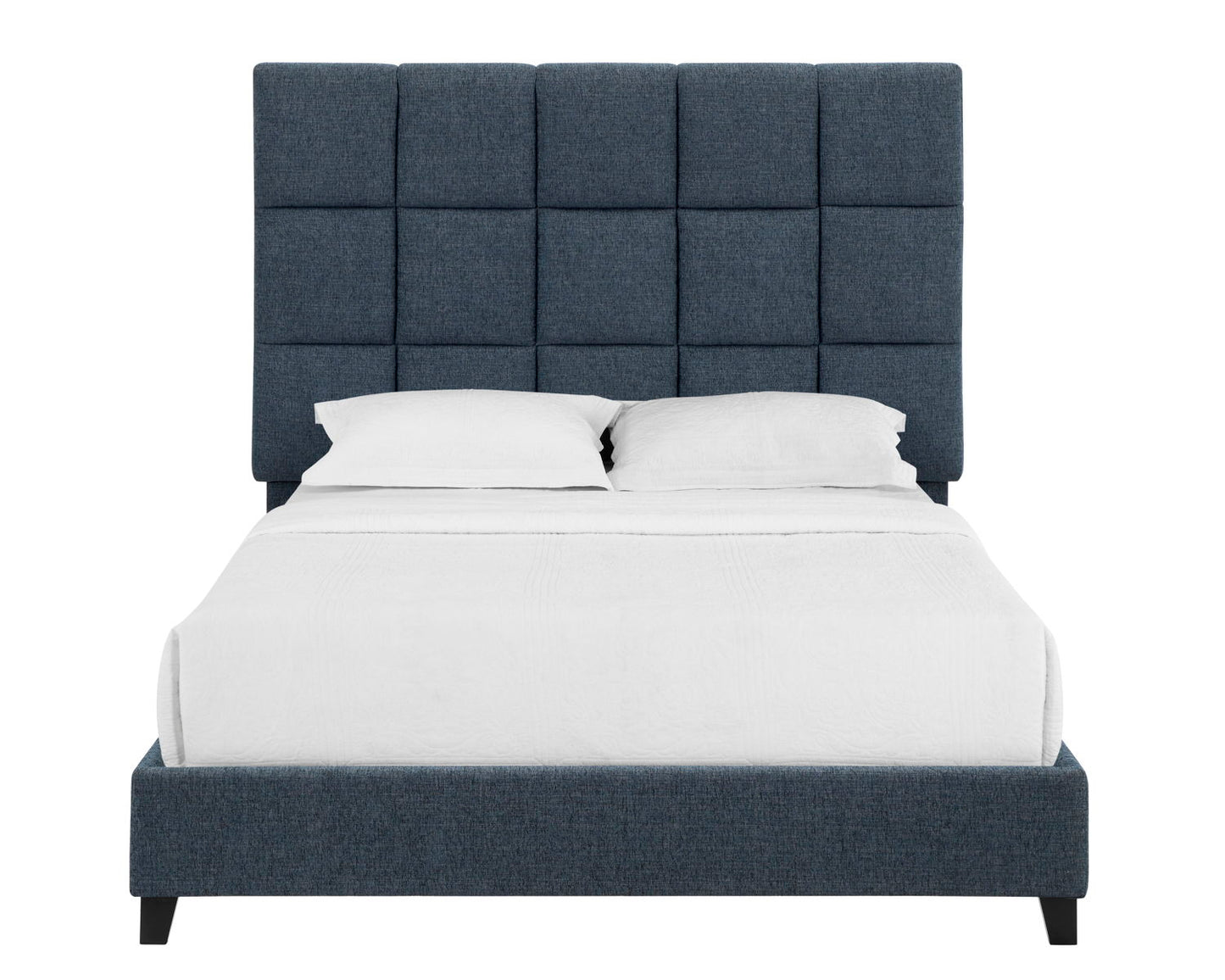 King Size Squares Upholstered Platform Bed - Navy Blue Denim
