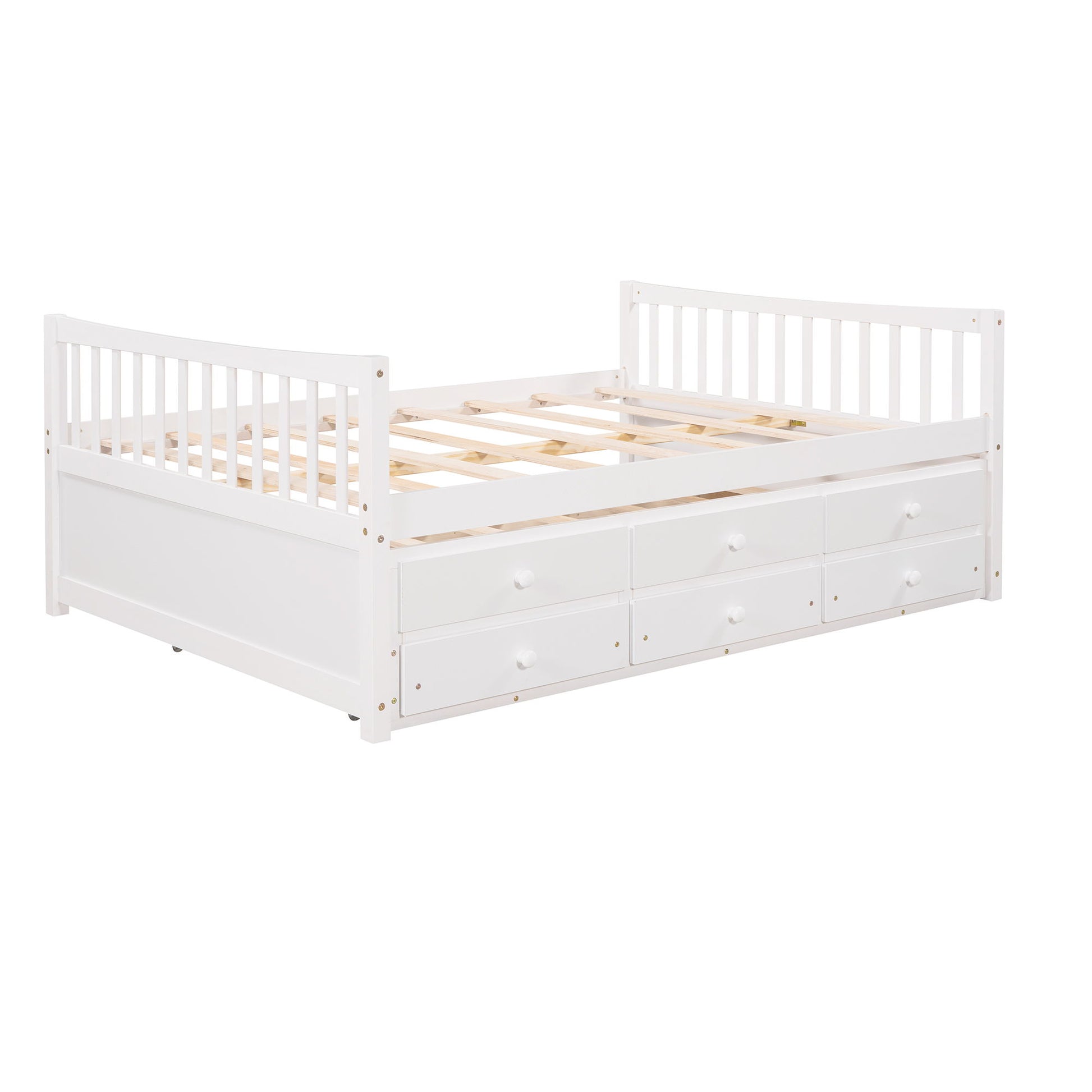 Full Size Daybed With Twin Size Trundle And Drawers - White