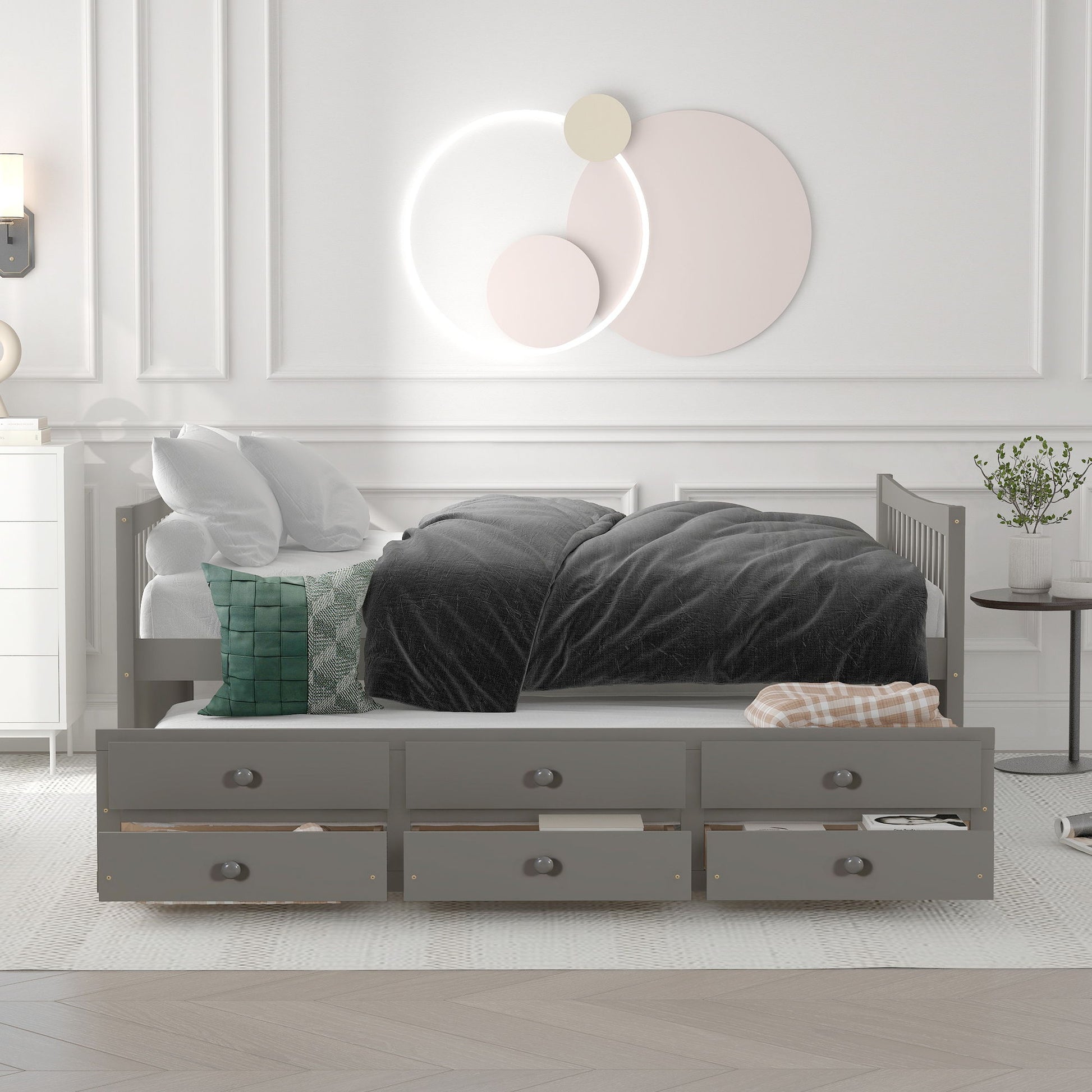 Twin Size Daybed With Trundle And Drawers - Gray