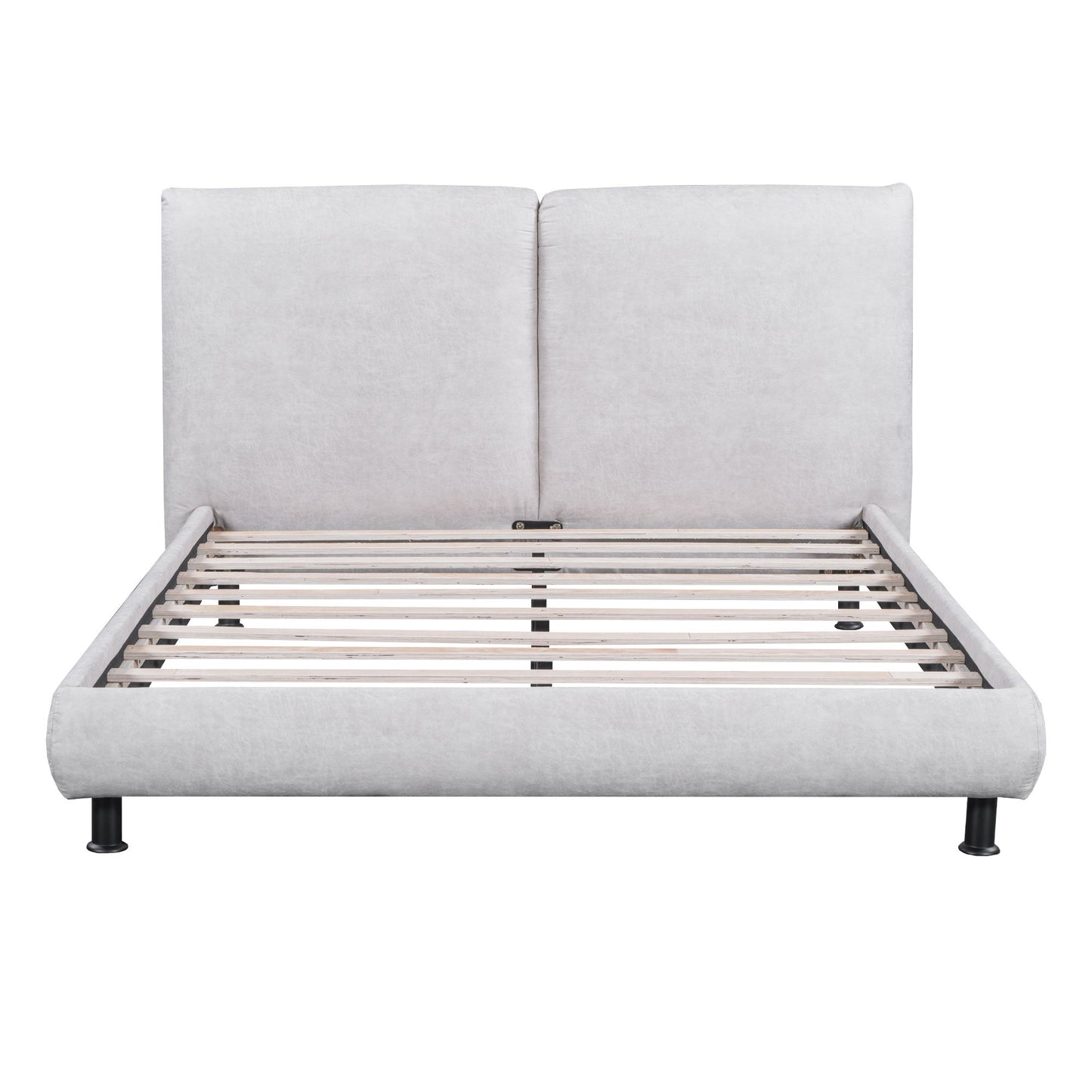 Upholstered Platform Bed With 2 Large Headrests And Thick