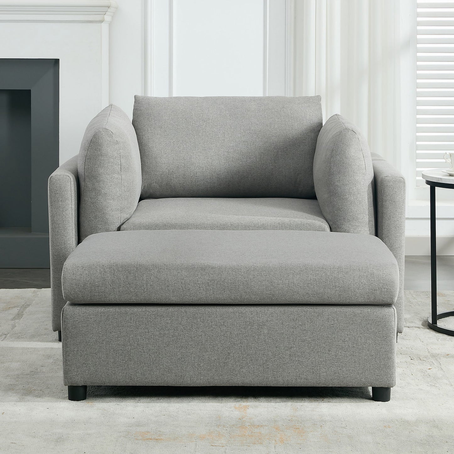 Wide Modern Oversized Armchair With Ottoman Stool, Single Sofa With Lumbar Support, Accent Chair