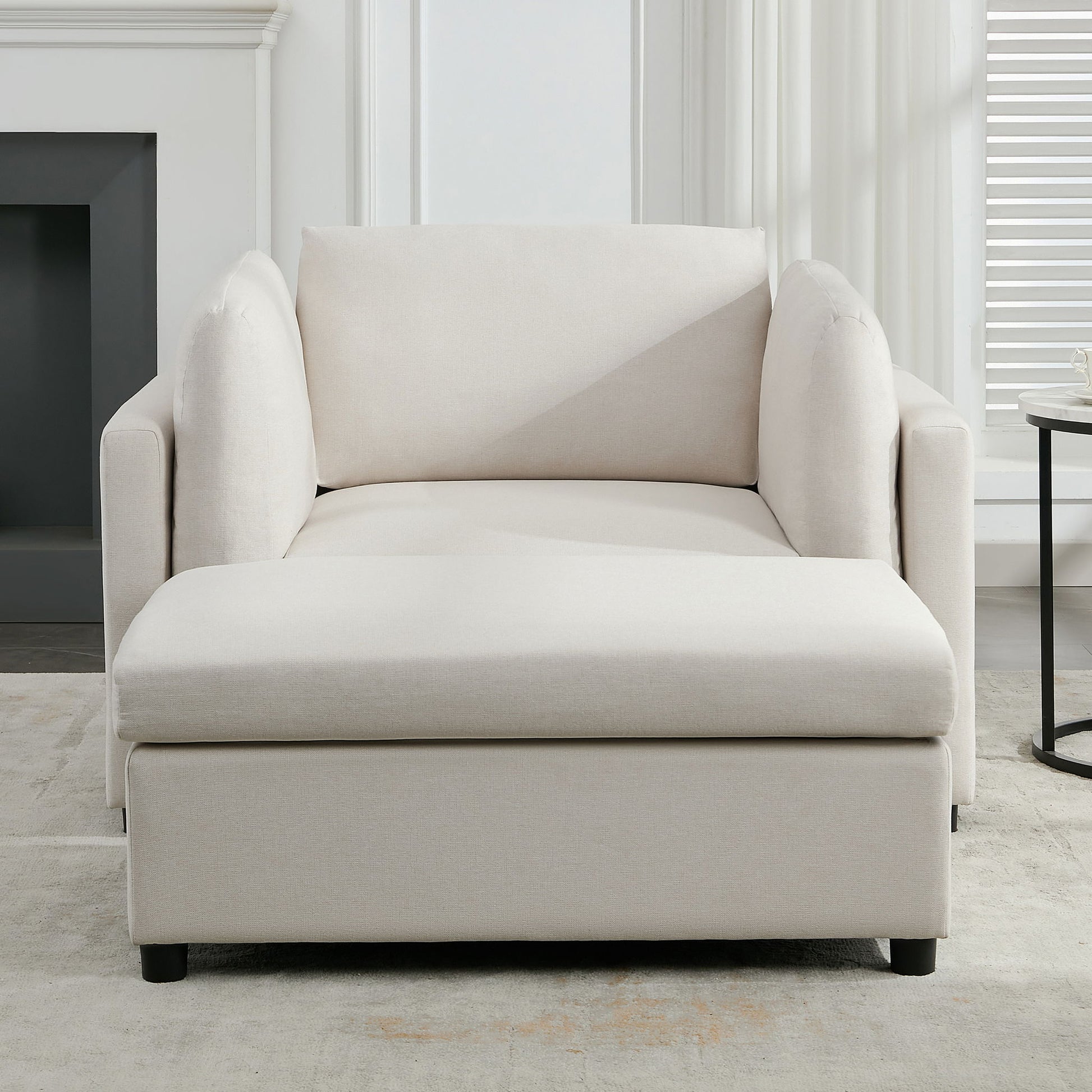 Wide Modern Oversized Armchair With Ottoman Stool, Single Sofa With Lumbar Support, Accent Chair, Reading Chair For Bedroom, Living Room - Cream