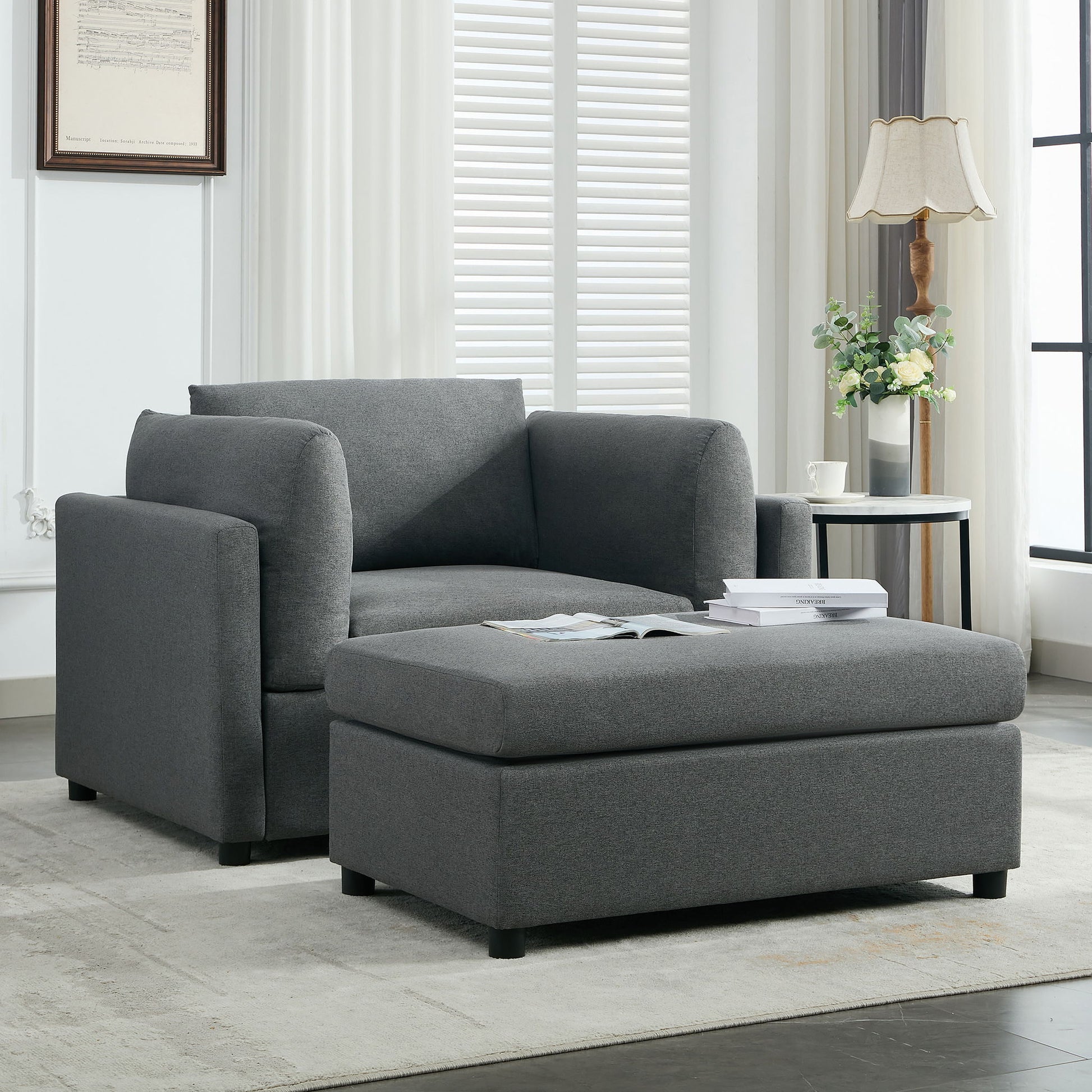 Wide Modern Oversized Armchair With Ottoman Stool, Single Sofa With Lumbar Support, Accent Chair, Reading Chair For Bedroom, Living Room - Dark Gray