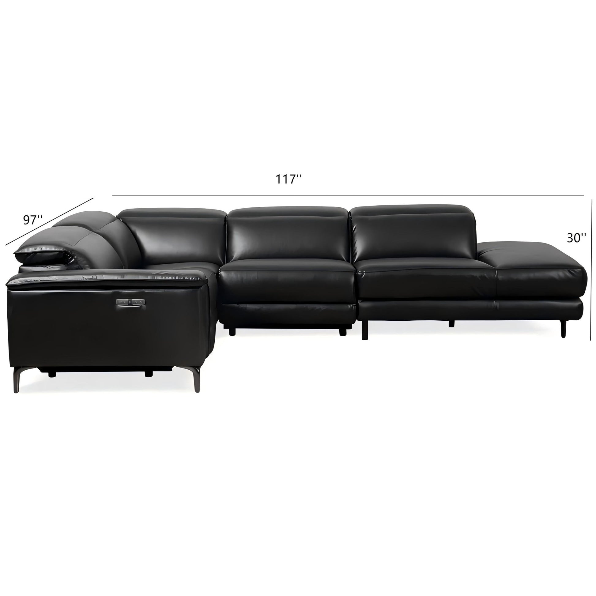 - Luxurious Vegan Leather: This sectional sofa is crafted from high-quality black performance vegan leather, offering a soft and luxurious feel. The sleek black finish provides a contemporary and sophisticated look that complements any living room or media room decor.